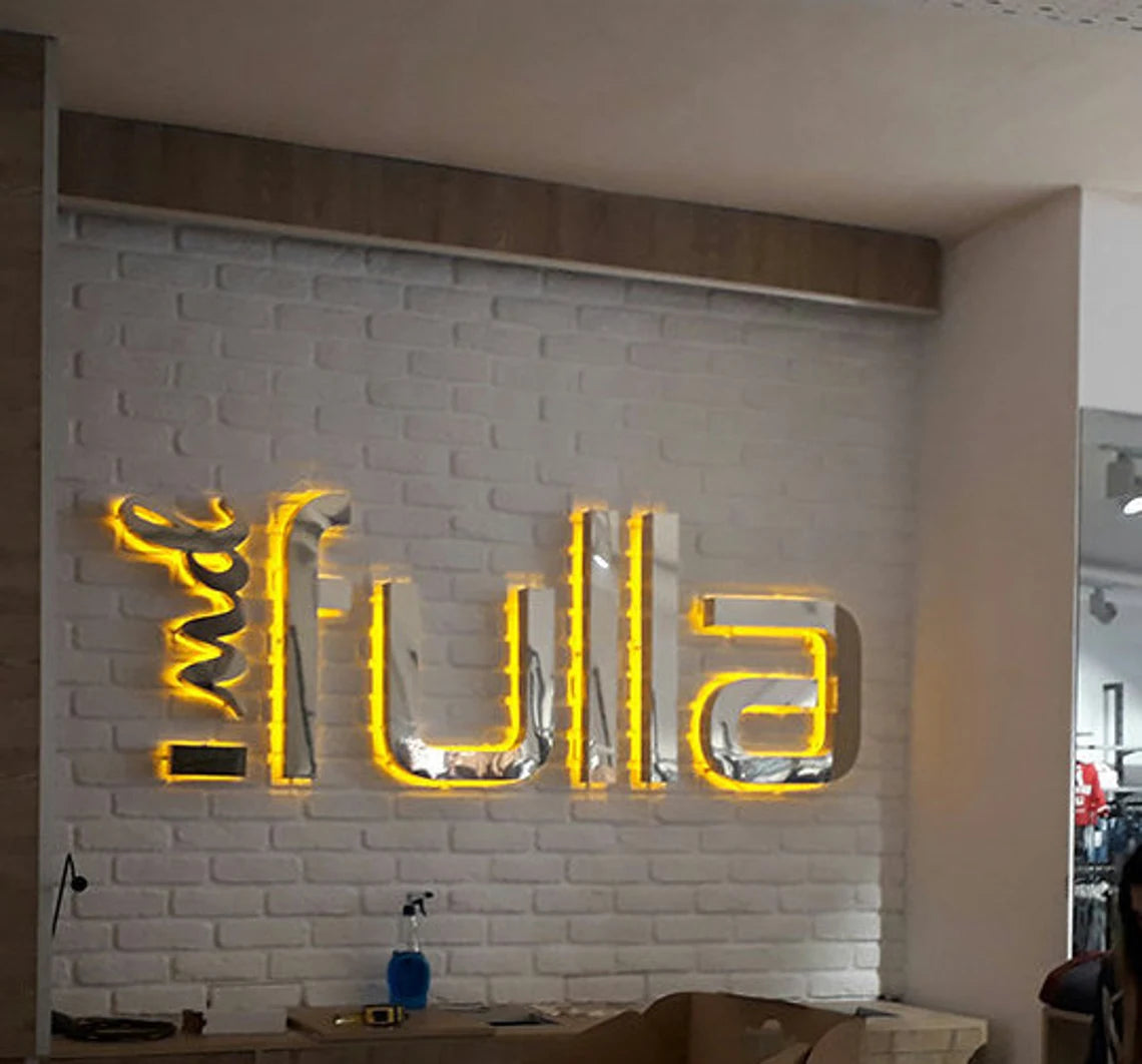 Custom 3D Brushed Metal LED Sign – Outdoor Storefront Logo